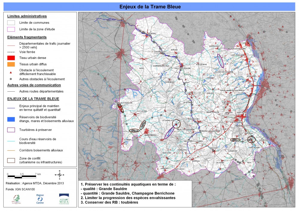- les enjeux trame bleue, rivière, étangs, zones humides
